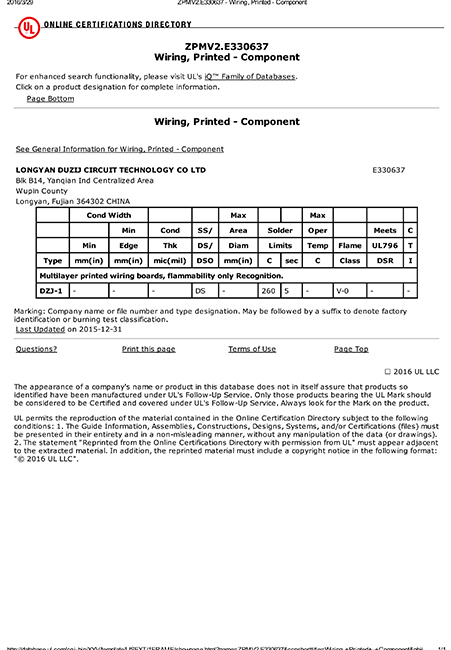 自1997年成立以來,都之杰已經獲得ROHS產品認證,各項技術指標達到國家先進水平,質量和信譽是企業的生命,我們一直以來持續不斷改善產品的質量,以質量取勝市場,提高公司的信譽度。多年來憑優良的產品質量、準時快捷的供貨和周到細致的服務,深得國內外客戶的好評。我們已經獲得良好的聲譽和客戶的信任,并逐漸成為客戶可信賴的、能長期合作的印刷線路板戰略合作供應商。我們堅持向國內外先進企業學習并不斷提升自主創新。公司擁有經驗豐富及穩定的團隊,視質量為企業生命,嚴格推行ISO9001質量管理體系,符合ROHS標準,并獲得了UL安全認證、TS16949和CQC認證。